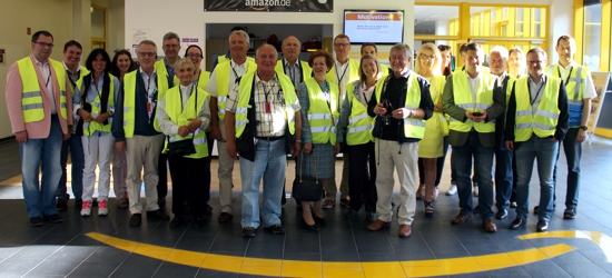 Eine Gruppe von 24 Personen des Aktionskreises folgte der Einladung von amazon Deutschland zu einer Führung durch das Logistikzentrum in Graben (Landkreis Augsburg). Die Führung übernahmen Standortleiter Ernst Schäffler (rechts außen auf dem Foto) und Aktionskreis-Mitglied Klaus Schmidt, Public Policy Manager Germany (zweiter von links).