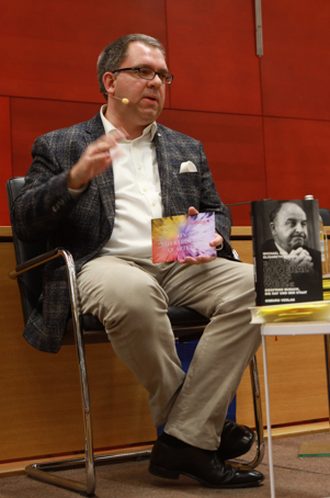 Dr. Klaus Beckschulte, Geschäftsführer des Börsenvereins des Deutschen Buchhandels Bayern, stellte "Herkunft" von Sasa Stanisic, erschienen im Verlag Luchterhand vor.