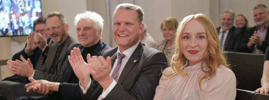 In Reihe 1 nahmen zahlreiche prominente Ehrengäste Platz, u.a. v.l.n.r.: Bambi-Preisträger Francis Fulton-Smith, Bavaria Fiction-Geschäftsführer Marcus Ammon, Grimme-Preisträger Udo Wachtveitl, Münchens Polizeipräsident Thomas Hampel und Grimme-Preisträgerin Brigitte Hobmeier. Insgesamt waren 200 Mitglieder und Freunde des AKWPW beim Festakt anwesend und erwiesen ihm die Ehre.