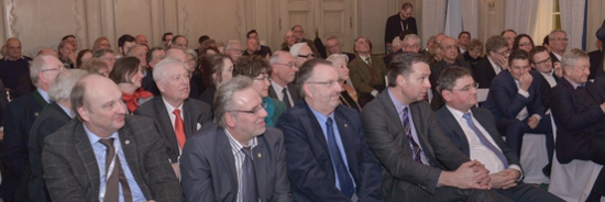Einige Ehrengäste verfolgten interessiert die Ausführungen zu Guttenbergs. Unter anderem in der ersten Reihe v.l.n.r. Polizeipräsident Hubertus Andrä, Polizeipräsident Robert Kopp, Polizeipräsident Robert Heimberger, Stephan Mayer, MdB und der Altöttinger Landrat Erwin Schneider.