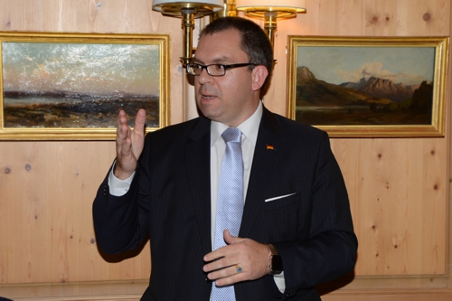 Bundespräsident a.D. Christian Wulff bedankte sich mit einer kurzen Rede für den warmherzigen Empfang beim Aktionskreis. Links daneben der israelische Generalkonsul für Bayern und Baden-Württemberg Dr. Dan Shaham.