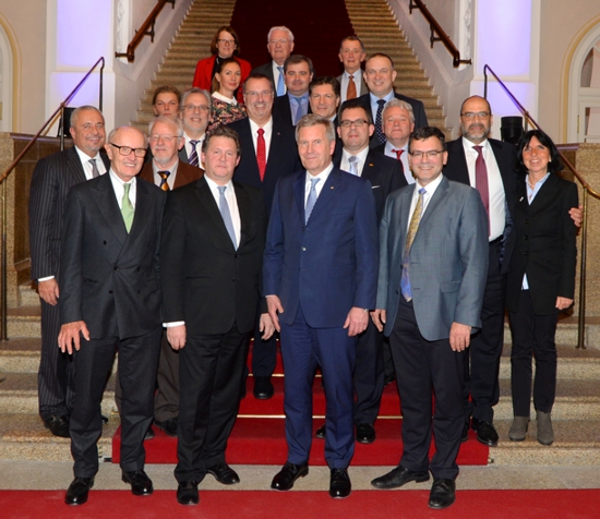 Reihe 1: Klaus-W. Körner, Hans-Georg Augustinowski (Schatzmeister), Bundespräsident a.D. Christian Wulff, Dr. Florian Herrmann, MdL