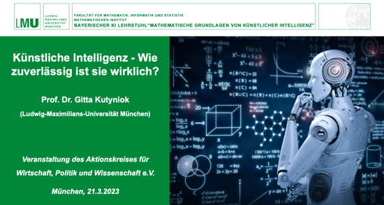 Hier liegt aber auch zugleich das größte Problem Künstlicher Intelligenz: ihre (noch) fehlende Zuverlässigkeit. Die Qualität der Trainingsdaten ist Kutyniok zufolge die oberste signifikante Fehlerquelle. Sind die Trainingsdaten zu schlecht, zu einseitig oder einfach zu wenig, führt das zu Problemen mit der Robustheit der KI. Dann kommt es zu unvorhergesehenen falschen Entscheidungen und Prozessen oft nach dem "Trial-and-Error"-Prinzip, auch weil der KI ein tiefes theoretisches Verständnis fehlt. So erklären sich u.a. Unfälle mit Robotern und bei selbstfahrenden Autos, Datenschutzverletzungen sowie unfaire Entscheidungen. Beim aktuell sich in aller Munde befindlichen ChatGPT kann es daher sein, dass viele Antworten falsche Informationen beinhalten, die Texte sich dennoch sehr glaubwürdig anhören. Prof. Kutyniok wies darum auf die Wichtigkeit der Kontrolle der KI hin, die durch den AI Act der Europäischen Union und der KI-Strategie der Bundesregierung gegeben sei.