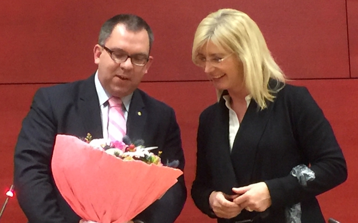 Tobias Kurzmaier, Vorsitzender, Staatsministerin Ulrike Scharf, MdL