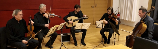 Musikalisch exzellent gestaltet wurde die Feierstunde vom Quintett Albert Ginthör (Violine), Ludwig Hahn (Violine), Benjamin Wesch (Oud), Marianne Venzago (Viola) und Hans Peter Besig (Violoncello) mit "Gute Nacht", "Der Leiermann" und "Frühlingstraum" aus Franz Schuberts "Winterreise".