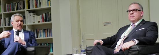 Bundeskanzler a.D. Karl Nehammer, der erst vor wenigen Wochen von seinem Amt zurückgetreten war, schilderte in seinen Ausführungen die aktuelle politische Situation in unserem Nachbarland und den Verlauf der bisher gescheiterten Koalitionsverhandlungen. Sein Vortrag geriet zu einem teils flammenden Appell mit prägnanten Forderungen an die Zivilgesellschaft. Sein Vierklang lautete: "Mut aufbringen. Verantwortung übernehmen. Haltung zeigen. Fehler eingestehen." Nehammer weiter: "Warum ist die Mitte nicht laut? Die Mitte muss endlich Stärke zeigen" und "Eine liberale Demokratie muss Ordnungskompetenz leben" und "Wir brauchen wieder mehr Freiheit für den Einzelnen, müssen wieder mehr Wettbewerb zulassen und mit zu vielen Bevormundungen seitens der Politik aufhören."