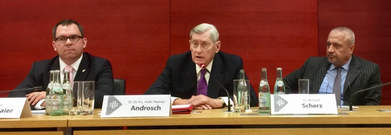 Hannes Androsch, 1938 in Wien geboren, war Bundesminister für Finanzen (1970-1981) und Vizekanzler der Republik Österreich (1976-1981) in den Regierungen Kreisky I bis IV. Bis heute gilt er als einer der renommiertesten Politikgrößen in den Reihen der SPÖ. Der Großindustrielle ist Verfasser umfangreicher Publikationen, Träger zahlreicher Auszeichnungen und in seinem Selbstverständnis als Citoyen wirtschafts-, gesellschafts-, kultur- und wissenschaftspolitisch vielfältig engagiert. Dr. Androsch lieferte dem im Konferenzsaal bis auf den letzten Platz gefüllten Auditorium einen klugen, umsichtigen Blick auf die aktuelle Weltwirtschaftslage.