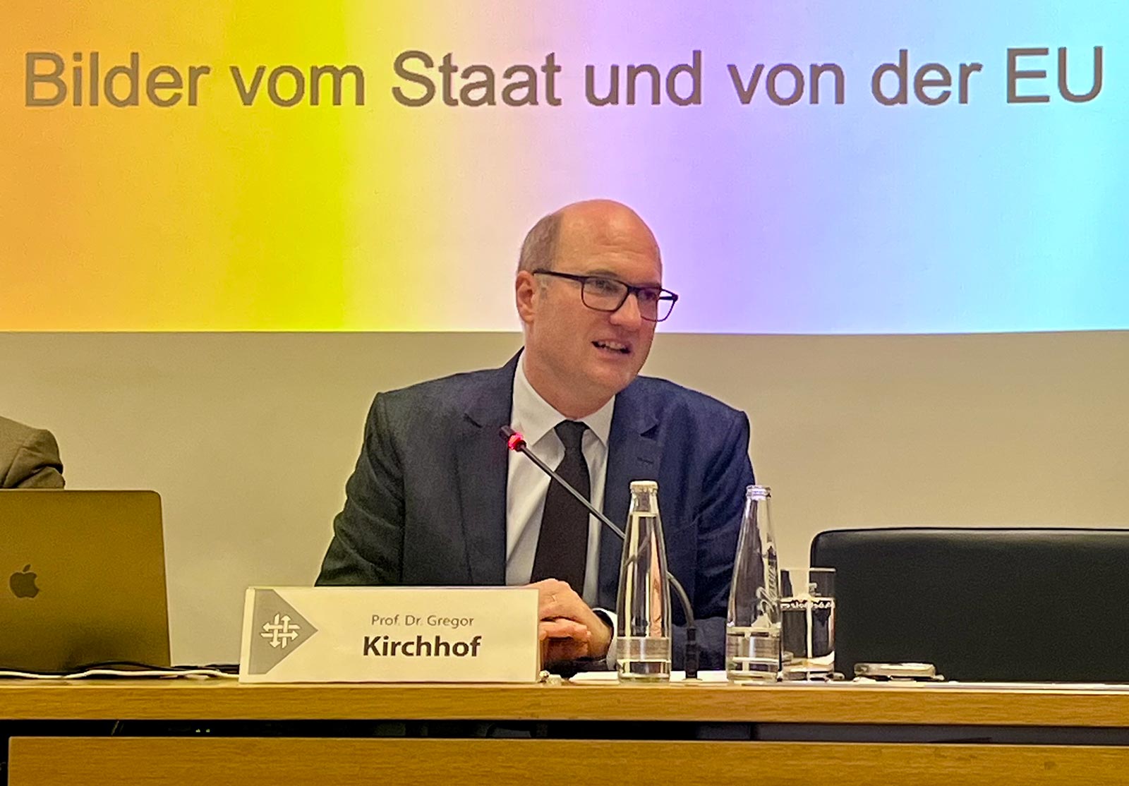 Einen Teil seines Vortrags widmete Prof. Kirchhof den Bildern, die wir als Bürger aktuell vom Staat haben. Einen zentralen Punkt dabei spielt für Kirchhhof der Begriff "Westlessness", der erstmalig auf der Münchner Sicherheitskonferenz 2020 aufkam. Der Professor sprach sich dafür aus, dass es in der Politik und Gesellschaft wieder "mehr Werte des Westens" braucht. Immer mehr Überregulierung und Bürokratie führen laut Kirchhof zu einem beachtlichen Demokratiedefizit. Aus seiner Sicht ist es daher nicht verwunderlich, dass viele Bürger den Staat und Institutionen wie die EU heute negativ wahrnehmen. "Was vor 30 Jahren mit Freiheit assoziiert wurde, betrachtet man heute mit Frust", so Kirchhof. Die EU-Kommission ist dem Professor viel zu mächtig und warum es 34 Agenturen der EU benötigt, kann man dem Bürger auch nur schwer erklären. "Wir müssen die Dinge dringend vereinfachen und dabei v.a. die Steuergesetzgebung. Die meisten Staaten kommen mit nur zehn Steuerarten aus."
