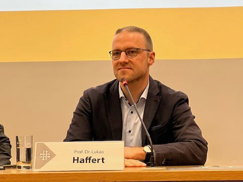 In der anschließenden Podiumsdiskussion, die Vorsitzender Tobias Kurzmaier moderierte, tauschten ihre Ansichten mit Prof. Haffert u.a. aus: Christian Hierneis (Bündnis 90/Die Grünen), MdL, Sprechner für Umweltpolitik. Er plädierte u.a. dafür, deutlich mehr Arbeitsplätze von der Stadt aufs Land zu verlegen.