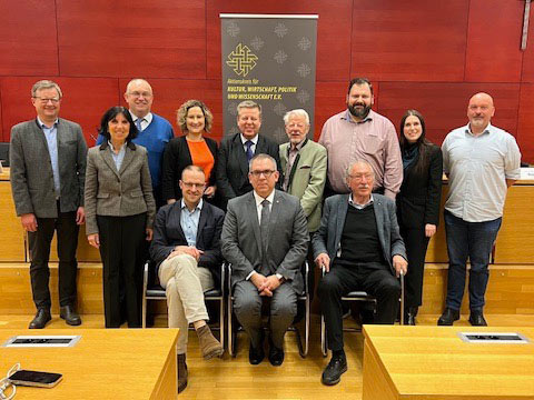 v.l.n.r. (stehend): Christian Hierneis, MdL, Gabriele Appel (Beirat), Hans Fritz (Beirat), Marina Jakob, MdL, Robert Brannekämper, MdL (Beirat), Hermann Harbeck (Beirat), Andreas Goppel (Beirat), Christina Ludwig (Schriftführerin), Lothar Gschwenter (Beirat) v.l.n.r. (sitzend): Prof. Dr. Lukas Haffert, Tobias Kurzmaier (Vorsitzender), Prof. Dr.-Ing. Holger Magel