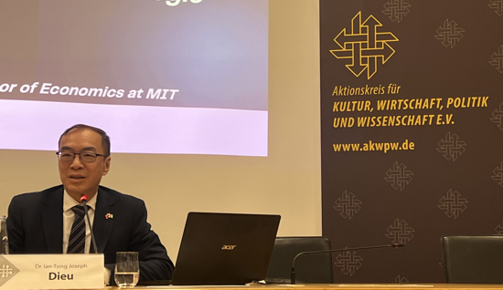 Der Vortrag von Dr. Dieu beleuchtete die Entwicklung Taiwans von einem Zufluchtsort der Anhänger Chiang Kai-Sheks Ende der 1940er Jahre mit den folgenden Jahrzehnten des Kriegsrechts bis zum Aufkeimen der Demokratiebewegung und dem Ende des Autoritarismus, um schließlich zu einer Demokratie zu werden. In jüngster Zeit ist Taiwan zu einem brandaktuellen Thema geworden, das die Aufmerksamkeit der Welt auf sich zieht. Taiwans Demokratie und damit teilweise auch der Wohlstand der Welt sind bedroht, denn Taiwan ist das Land, das von China in zunehmenden Maß militärisch bedroht wird. "Taiwan darf kein zweites Ukraine werden", appellierte Dr. Dieu und berichtete, dass sich das taiwanische Volk mit Waffenschulungen und Erst-Hilfe-Kurse auf einen möglichen Überfall Chinas vorbereitet. In Taiwan wäre der Leitsatz "Si vis Pacemaker, para bellum" ("Wenn du den Frieden willst, bereite den Krieg vor") in der Gesellschaft tief verankert, so der Generaldirektor.