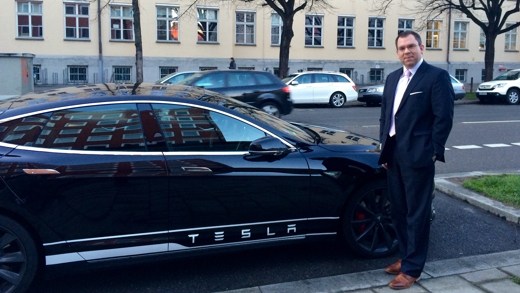 Vorsitzender Tobias Kurzmaier übernahm die Führung und fuhr als Erster im Tesla S in der speziellen Performance-Version P85D mit 700 PS. Beschleunigung von 0 auf 100 in drei Sekunden.