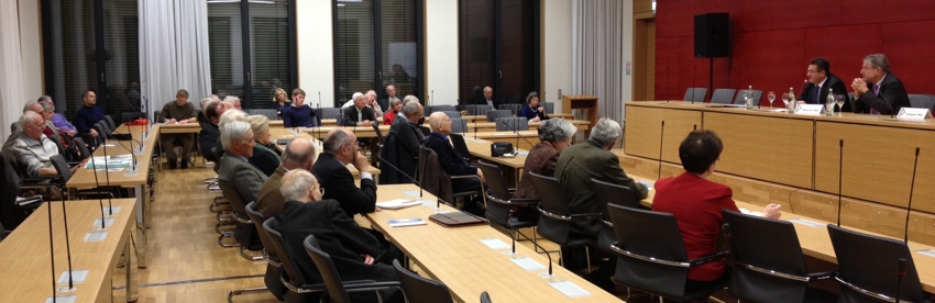 Trotz des Termins kurz vor Weihnachten fanden sich rund 50 interessierte Zuhörer im Konferenzsaal des Landtags ein, um dem Staatssekretär zu lauschen, wie es seiner Meinung nach mit dem Euro weitergeht und wie es um die europäische Finanzpolitik derzeit bestellt ist. Pschierer unterstrich mehrmals, dass er sich absolut sicher sei, dass der Euro auch weiterhin als mehrheitliche Gemeinschaftswährung in der EU bestehen bleibt, wobei er nicht ausschloss, dass sich eventuell einzelne Länder wie z.B. Griechenland doch von ihm verabschieden müssten.